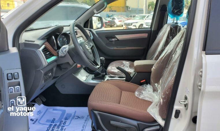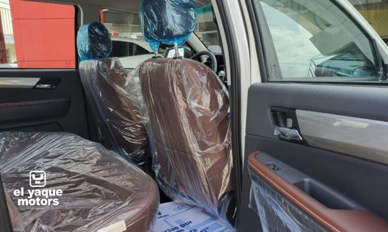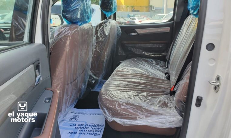 El diseño exterior de la T8 es robusto y atractivo. Con aros de aleación y neumáticos 265/60R18, tracción trasera y estribos, esta pick-up no solo es funcional sino también estilizada. Los halógenos antinieblas mejoran la visibilidad en condiciones adversas, mientras que los asientos en tela aseguran confort para todos los pasajeros.